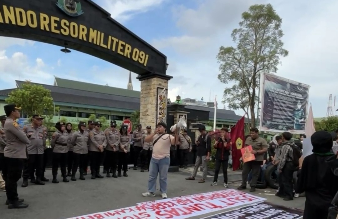 Namun, massa tetap bersikeras ingin bertemu langsung dengan Danrem 091/ASN, Anggara Sitompul.
