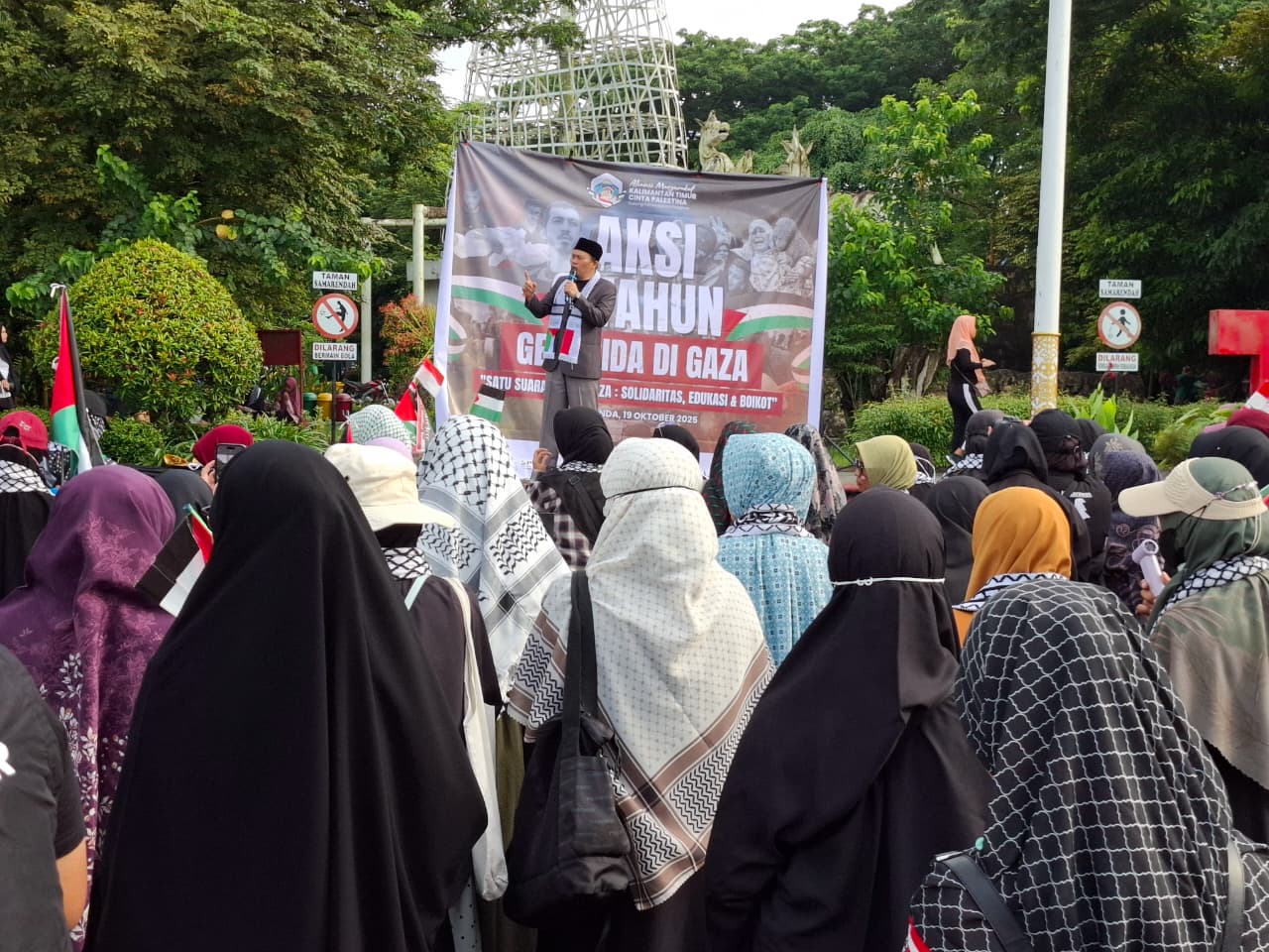 Dalam suasana yang penuh semangat, orator lain juga menyampaikan seruan keras terhadap keheningan dunia internasional di tengah penderitaan rakyat Gaza.